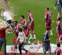 Guardiola recibe la tradicional ducha de cerveza del campeón