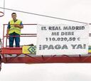 Reclama una deuda al club subido en una grúa