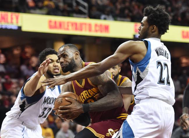 Towns y Wiggins intentan frenar a LeBron James. Ken Blaze (USA Today Sports)
