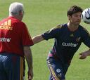 Xabi Alonso, David Villa y Luis García, en rueda de prensa