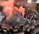 El espectacular recibimiento al bus del Madrid en su llegada al Bernabéu: pelos de punta