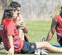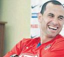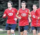 Forlán vivió su primer día como jugador rojiblanco