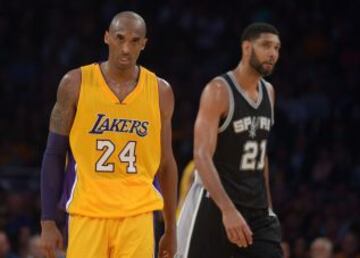 La cara y la cruz. Tim Duncan llegó a los 25.000 en la NBA y Kobe Bryant no tuvo un buen día.