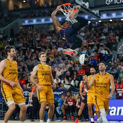 Y los mismos seis (60-66) en el arranque del cuarto decisivo. Una diferencia que enjugaron los de Pascual con un giro de intensidad defensiva notable. Cale, Parra y Willy andaban en el quinteto que forzó a tomar malas decisiones al rival (el Barça, ojo a esto, solo extravió cinco balones). Labor abnegada atrás y nueve puntos consecutivos de Punter, que apiló 11 en el periodo. El parcial gigante de 10-0 aún creció más: 24-9 en seis minutos. El Barça había reservado energías para la pegada definitiva. La hinchada culé en el Roig Arena acogió la reacción con entusiasmo, ávida de éxitos camino de los tres años sin trofeos.