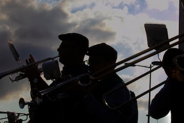 Vista general de la llegada de los equipos aclamados por el público