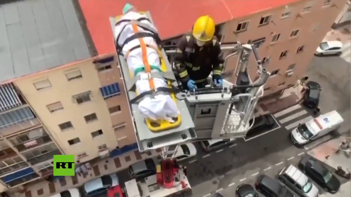Ha ocurrido en Málaga, cuando el trabajador público ha tenido que subir en grúa para poder bajar al paciente al punto más alto del edificio y llevarlo al hospital.