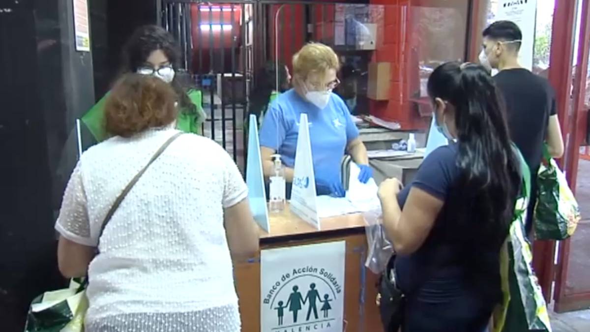Desde esta mañana familias sin recursos han hecho cola en Mestalla (Valencia) para conseguir alimentos, vales de diez euros y cien menús que reparte la ONG del chef José Andrés.