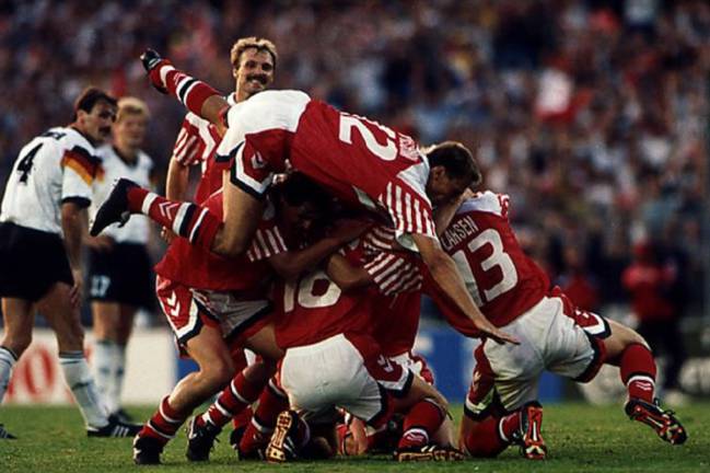Los daneses estaban de vacaciones hace 24 años. No se habían clasificado por los pelos para la Eurocopa de aquel año, que tendría lugar en Suecia. Sin embargo, la Guerra de los Balcanes lo cambió todo. Yugoslavia fue excluida y la tropa rojilla entró en la competición, que por entonces solo disputaban ocho contendientes. La estrella danesa, Michael Laudrup, no participó en el torneo.