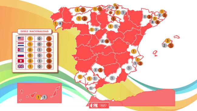Así es el mapa del medallero español por provincias