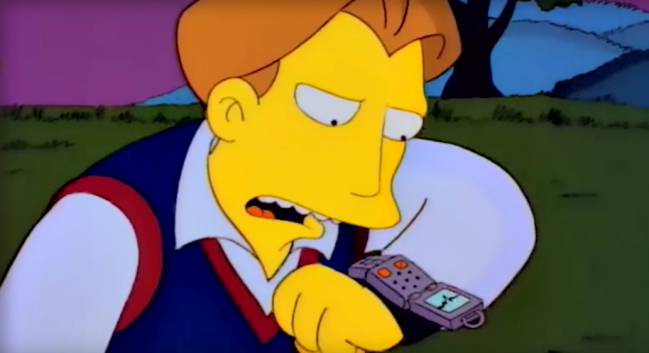De nuevo en 'La boda de Lisa', el prometido de la hija mayor de los Simpson utiliza un smartwatch para hacer una llamada de emergencia. Más de veinte años después, los smartwatch son el último gadget por el que apuestan las grandes empresas de tecnología.