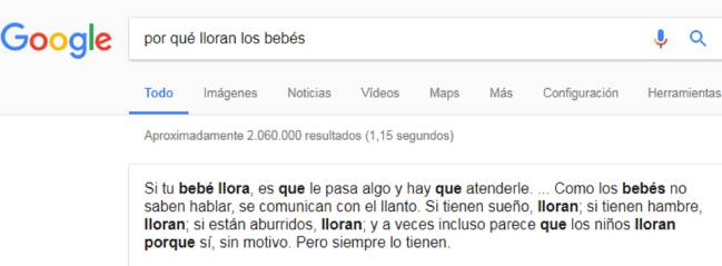 Cuando le preguntas a Google por qué lloran los bebés la primera respuesta que obtienes es ésta: