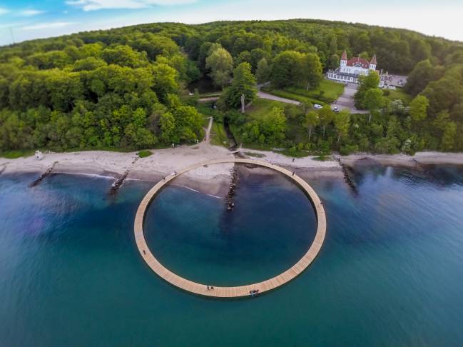 La idea del proyecto ha venido de la mano de un estudio de arquitectura danés llamado Gjode & Partnere. La compañía destaca por crear obras arquitectónicas de lo más curiosas integradas en la naturaleza. En 2015 conocimos un puente "infinito" que tenía forma circular en Aarhus (Dinamarca). Según el cofundador del estudio, Johan Ghode, crearon una escultura que "resaltara la importancia de la relación entre la ciudad y el magnífico paisaje de la bahía".