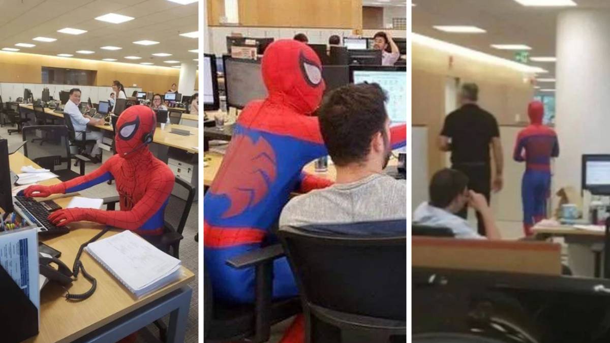 Según una publicación de un usuario de Imgur, un banquero anónimo de Sao Paulo, Brasil, decidió dar rienda suelta a sus impulsos y, tras dejar su trabajo, se presentó vestido de Spiderman en su último día. Después de ver a Andrew Garfield o a Tom Holland metidos en el personaje del hombre-araña, este hombre les ha robado el protagonismo de la manera más cómica.