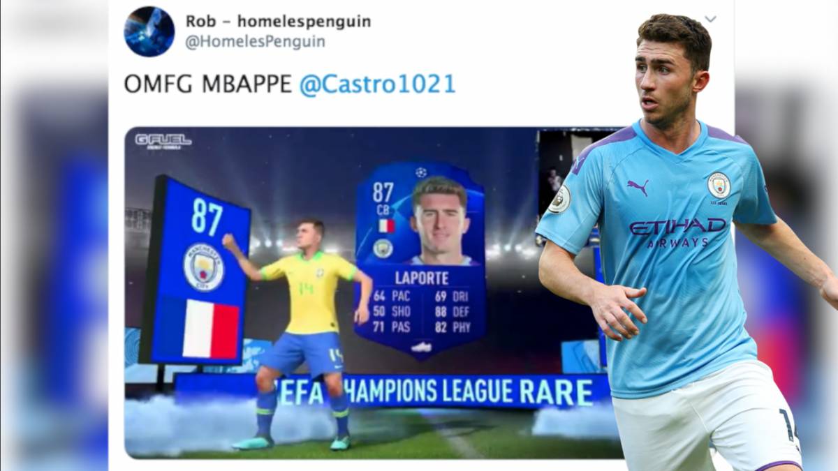Un youtuber se ha hecho viral tras esta reacción. Pensaba que le había tocado Mbappé y finalmente era Laporte. El central contestó con humor.
