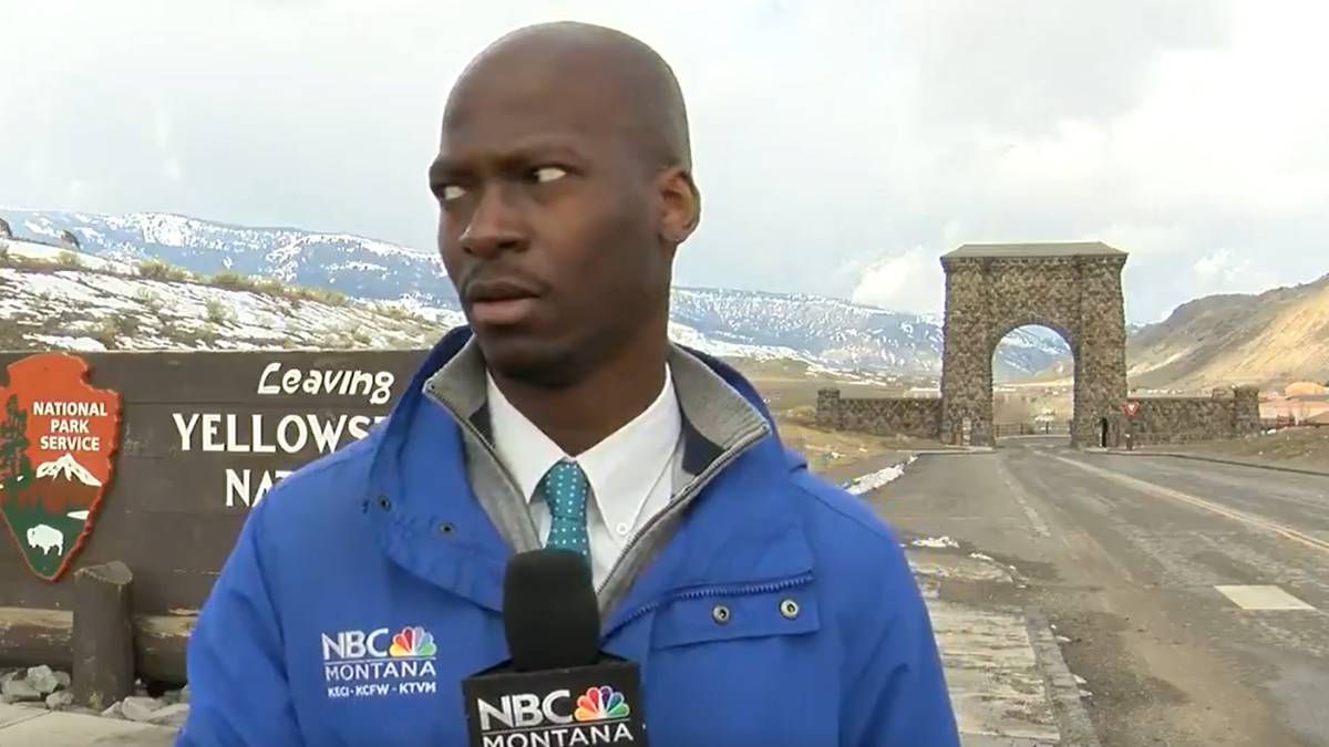 Un reportero de la NBC de Montana se quedó congelado cuando se le acercó un bisonte en directo. Estaba en el parque de Yellowstone.