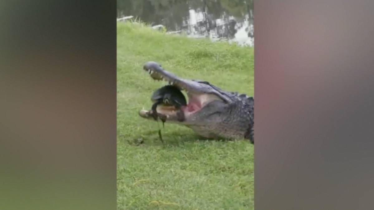 Este vídeo se está haciendo tremendamente viral. En él se ve a una tortuga prácticamente condenada que gracias a su caparazón resiste el ataque.