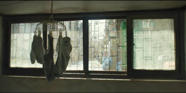 La familia Park siempre aparece por encima de los Kim en los planos elegidos para la película. De hecho, utilizan a menudo el contrapicado para mostrar la grandeza de los primeros.