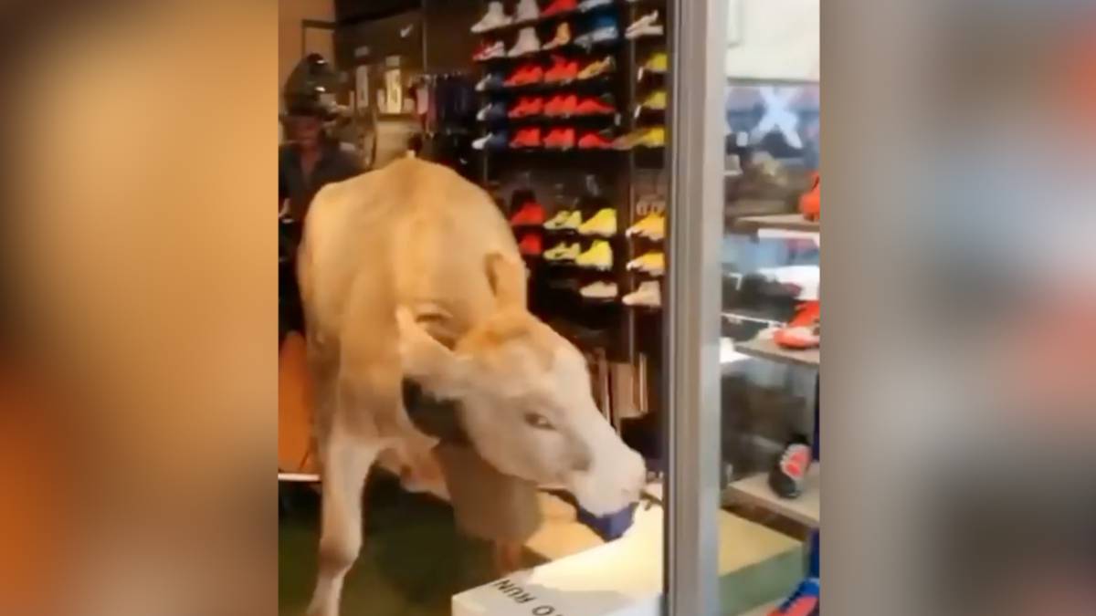 Este vídeo de una res descontrolada entrando en iuna tienda de zapatillas se ha vuelto viral en las últimasa horas.