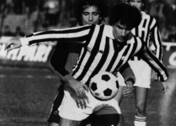 Scirea jugador de la Juventus intentando controlar un balón.
