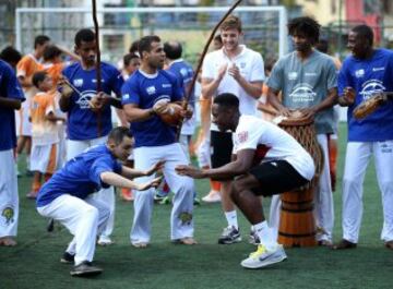 La selección inglesa estuvo en la favela Rocinha, en Río de Janeiro, con bailarines de capoeira brasileños.