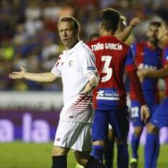 Krohn-Dehli: "Es un profesional serio y aporta muchas cosas al equipo. Sin embargo el hecho de que un jugador venga de un club no es lo que prima para que juegue, porque si no, Iborra habría jugado ante el Levante. Pero nos va a ayudar mucho e irá a más, seguro".