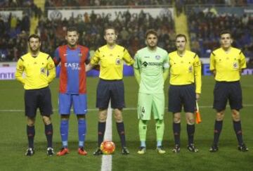 El árbitro Álvarez Izquierdo acompañado por sus asistente Juan Carlos Barranco e Ignacio Rubio el cuarto árbitro Óscar Martínez y los capitanes Adán y Sergio Álvarez.