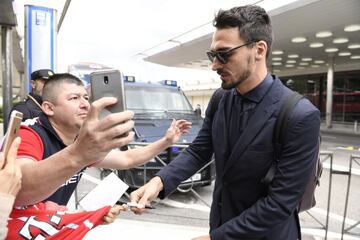 Hummels firmando autógrafos a su llegada a Barajas.