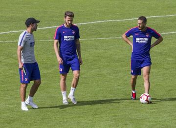 Simeone mantuvo una larga charla con Saúl y Koke.