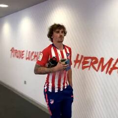 El homenaje de Griezmann a Godín en su llegada al Wanda
