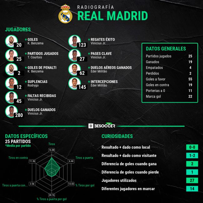 Principales datos del Real Madrid. BeSoccer Pro