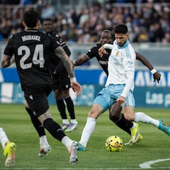 Últimos minutos. “Hemos controlado el partido sin tener el balón. Cuando hemos pasado al 4-2-3-1 se ha cerrado bastante y después del gol hemos puesto a Saidu por delante de la defensa, con Francho y Mawuli haciendo la presión en la zona de creación. Eso ha provocado que intentaran filtrar los pases desde más atrás y ahí es donde tienes menos dificultad porque ves venir los balones más rectos. Al principio hemos intentado ir arriba para enganchar a la gente. Creo que estamos en una situación en la que tenemos que dar más que lo que debemos recibir. La gente ha demostrado que en cuanto se siente orgullosa del equipo por la entrega, responde. Ahora el principal peligro que tenemos es el elogio. El elogio debilita. No podemos caer en la autocomplacencia de que ya está o que bien vamos. Empezamos de cero. Hemos ganado otra posición, pero no hemos hecho nada. Con estos puntos descendemos. Hay que seguir ganando finales, por lo menos compitiéndolas. Y si las competimos como estos dos días, estamos muy cerca de conseguirlas. El equipo cada vez se encuentra más cómodo en los entrenamientos con lo que se les pide hacer con balón y queremos llegar a tener fases de dominio más largo, aunque sólo sea para descansar y poder defendernos con balón, ya que si conseguimos atraer a los rivales, arriba tenemos muchas cosas”.