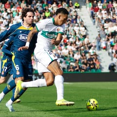 El Elche saltó distraído, sin poner el foco donde tocaba, como si fuese un partido más. Cuando se dio cuenta, ya caía. Un pase de Lozano a la espalda de la zaga franjiverde, volcada tras una contra, dejó a Kike García cerca del área. El ariete, con un punterazo, se sacó un gran recurso para batir a Dituro. El Espanyol tenía el partido donde quería. Manolo González respiraba porque el Elche era muy previsible volcando el juego por sus costados. La más clara para igualar el choque la tuvo André Silva, pero El Hilali metió la pierna para evitar el empate casi cuando el Martínez Valero celebraba el empate.