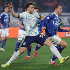 Como e Inter se enfrentaron en la orilla del lago en la ida de la semifinal de la Copa Italia. Mientras que el equipo de Cesc alineó con un inusual 5-4-1, los nerazzurri adelantaron a Diouf, ideando una estrategia innovadora para sorprender a sus rivales. De hecho, el equipo visitante intentó controlar el flujo de balón y construir, pero tuvo dificultades para identificar ocasiones claras hasta el 17’. En ese momento, Bisseck falló un pase que encontró a Vojvoda, quien fue providencialmente recuperado por Carlos Augusto. Un minuto después, se repitió la misma jugada, pero el disparo le cayó a Josep Martínez. El partido pasó a manos del Como, con la participación de todos los jugadores, incluido Butez. En el 21’ el portero disparó directamente a Caqueret, pero Frattesi presionó con éxito. Nico Paz, de vuelta a la titularidad esta noche, buscó sentenciar el partido en el 36’ con un zurdazo desde la frontal del área, que Martínez atajó. Cuando la primera mitad se acercaba al final podría haber llegado un super gol: Vojvoda superó a Bastoni y Acerbi y remató con efecto con el exterior del pie. El balón se fue desviado por poco.