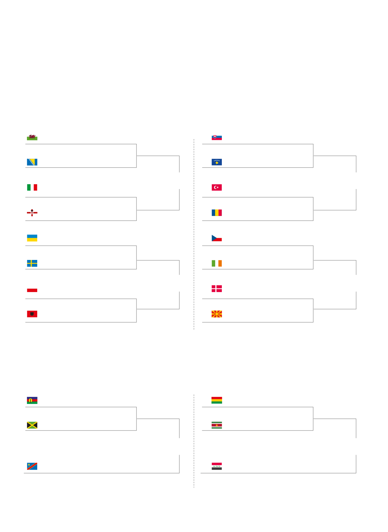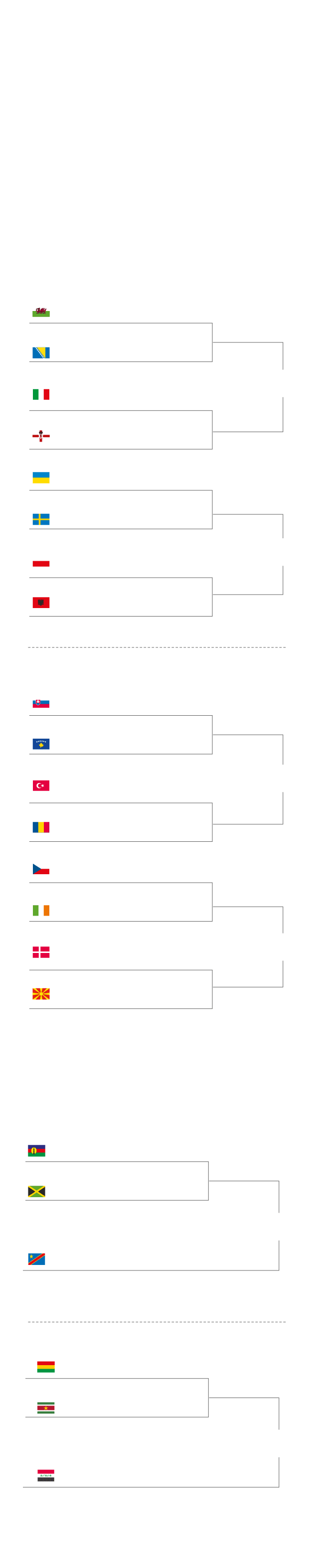 a un partido. Los ganadores acompañarán a los 12 países europeos ya clasificados: