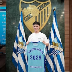 Renovación de Ochoa, que estaba a su lado. “Para el Málaga esto es muy importante y para el proyecto que tenemos entre manos. Agradecer a la familia por la predisposición que habéis tenido. Aaron, te queda por delante toda una vida futbolística y no has parado de crecer. El club cree en ti y queremos lo mejor de ti y de tu fútbol. Gracias por tu compromiso y no te canses de mejorar, aunque te queda mucho por mejorar, todavía no eres el mejor Ochoa que podemos ver”.
