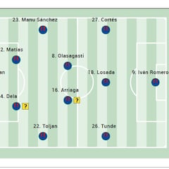 Míchel no recupera aún a Álex Moreno y tiene la baja de Bryan Gil por una lesión en la rodilla. El técnico volvería a dar la titularidad a Ounahi. Witsel y Vanat, en estado de gracia.