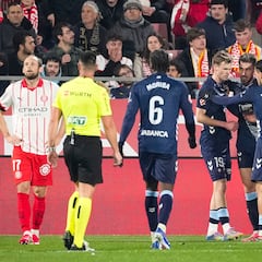 Domínguez: Su mejor intervención fue una intercepción que evitó una ocasión clara del Girona. Se incorporó varias veces al ataque para sorprender a Míchel. Solo pagó la inactividad en el tramo final del partido, cuando pidió el cambio tras sufrir calambres. Aprobado.
