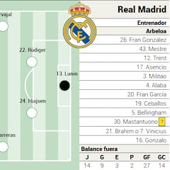 Brahim es un efecto colateral de esa decisión. Si juega Vinicius, es el malagueño quien tiene que hacer sitio a Mbappé. Aunque tiene otras opciones. Porque Arbeloa también tiene que reconfigurar el centro del campo ante la ausencia, por sanción, Valverde. Y la pieza de Brahim también encaja ahí.