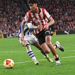 El lateral izquierdo se ha entrenado este jueves con el grupo en Lezama tras el susto ante Osasuna. Laporte apunta a baja ante el Atlético por los isquios.