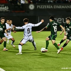 Valoración del empate. “El once que sacamos fue para un determinado partido, o una primera parte de partido; el resultado nos acompañó, pero no era lo que buscábamos. En el primer tiempo tuvieron varias opciones para ponerse por delante. El Racing es un equipo de mucho poderío, que te somete de tres cuartos hacia adelante, con un nivel increíble. Y sabíamos que íbamos a sufrir. Supimos sufrir. El segundo tiempo fue diferente. La entrada de Youness nos dio más posesión, con un segundo plan de partido para jugar con extremos puros. Tuvieron algunas, pero no dio la sensación de ese sometimiento, incluso vi que en el tramo final veía que podíamos cogerles en transiciones. Un partido que sabíamos que era muy complicado, y encima con bajas, o jugadores que vuelven de lesión o jugadores con el depósito justo. Doy mérito a este empate. Competimos como animales. Mucho mérito que con un Racing que se jugaba muchas opciones de ascenso, hayamos sido capaz de empatar, y en el tramo final... uf, pudimos cogerles en alguna”.