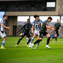 A diferencia del primer acto, solo hubo un equipo en el inicio del segundo. Un cuadro blanquinegro que logró instalarse en campo contrario, elaborar jugadas trenzadas en las que se armó de paciencia y probar continuamente a un Fraga que no daba abasto para achicar agua. Aun y todo, el ‘1’ fue capaz de sostener a los suyos. El tercero seguía sin llegar y Pablo Hernández comenzó a agitar su banquillo desde el modular confeccionado para prensa y analistas en Zubieta. Ya era tarde. Ochieng volvió a cabalgar. Primero estrelló un balón en el palo, pero a la segunda, tras algún rebote fortuito, hizo el de la victoria. Brignani seguro que tendrá pesadillas con el keniata.