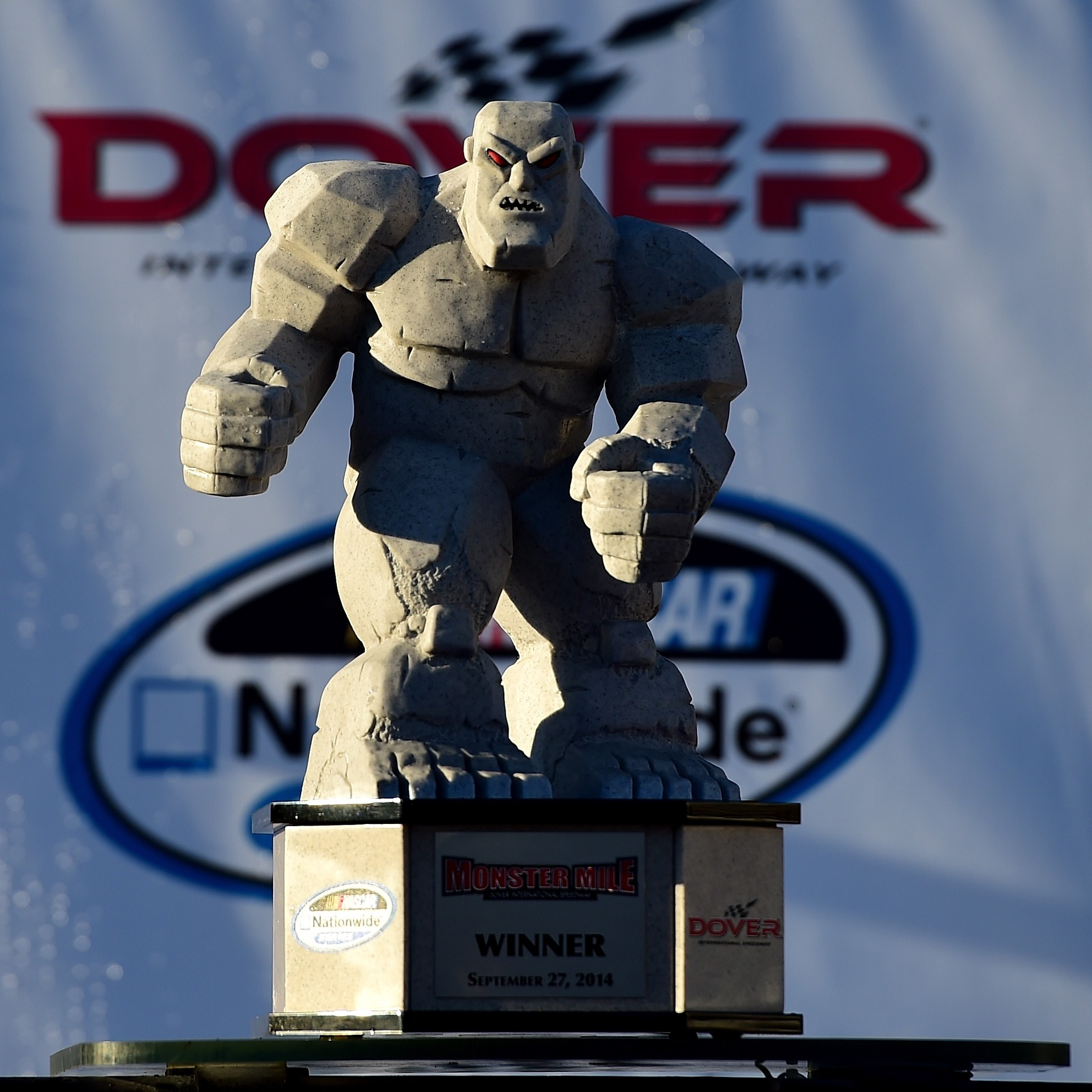 Las pruebas de la NASCAR son famosas internacionalmente por los excéntricos premios que otorgan, muy alejados de las copas tradicionales de Europa. Prueba de ello es el coloso de piedra de la prueba de NASCAR de Dover (conocida como la Milla Monstruosa...): no pasa desapercibido y poco tiene que envidiar a ningún trofeo del mundo en cuanto a peculiaridad se refiere.