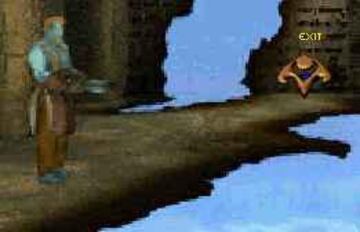 Vamos a las chozas que están junto a la iglesia, de la más cercana al camino de salida al prado, cogemos un cántaro, nos dirigimos a la entrada de la iglesia, y usamos el cántaro en el rostro lloroso que hay en la pared (si pulsamos sobre el rostro, sin nada, volveremos a la nave).