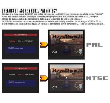 Con la llegada de Dreamcast, Sega dio un golpe de efecto y acabó con los problemas asociados a las conversiones PAL. Bueno, está bien, no dio un golpe de efecto, dio el selector de 50/60 hz. Antes del lanzamiento de Dreamcast en Europa, SOE (Sega of Europe) pidió encarecidamente a todos los desarrolladores que incluyeran la opción de 60 hz. en sus conversiones PAL. Sega había notado la predilección de los usuarios europeos y australianos de PlayStation por los títulos NTSC y tomó una decisión que los usuarios de la pequeña caja blanca todavía están agradeciendo. Además, la incorporación de esta opción no suponía ningún desembolso adicional para el consumidor, puesto que la 128-bits de Sega emite por defecto una señal RGB. Con el propio cable que acompañaba a la consola ya podíamos disfrutar a todo color de los 60 hz. en nuestros televisores PAL. Ni siquiera las prisas por realizar lanzamientos internacionales simultáneos, como en el caso de Sonic Adventure 2, han puesto en peligro la presencia del selector de 50/60 hz. en Dreamcast. Sony debía permanecer alerta, el listón de calidad en las conversiones PAL había quedado muy alto...