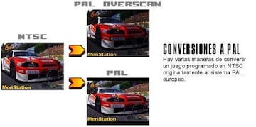 Ya tenemos programada la versión NTSC de nuestro juego favorito, pero... ¿cuándo y cómo se desarrolla la versión PAL? La respuesta es categórica, no se desarrolla ninguna versión PAL en un sentido estricto. En la enorme mayoría de los casos la versión PAL se realiza modificando la versión NTSC del software, se establece un refresco de pantalla de 50 hz. (lo que repercute en un descenso apreciable de velocidad) y se "estira" la imagen para compensar la mayor resolución del sistema PAL, esta técnica se denomina comúnmente overscan. Los juegos que no utilizan esta técnica muestran las tristemente famosas bandas PAL, que son un conjunto de líneas de resolución que no se aprovechan en nuestra TV. En resumen, los juegos en su versión PAL son sobre el papel un 17,4% más lentos y muestran un aspecto de imagen alterado (con la presencia de bandas negras) o achatado (debido al overscan).