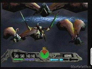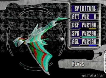 Mención especial para el detalle que más me ha alucinado de todos: el morphing. Veréis, a medida que se va desarrollando el juego, nuestro dragón va adquiriendo diferentes formas, las cuales a su vez pueden alterarse a voluntad. Existen 4 parámetros básicos: agilidad, defensa, espíritu (capacidad mágica para los amigos) y ataque. Aumentar una supone disminuir otra, por ejemplo si queremos un dragón resistente tendremos que sacrificar la velocidad, y si queremos que tenga gran poder de ataque perderemos potencia en las magias. Hasta aquí nada del otro mundo. Pues bien, cada cambio que hagamos, por mínimo que sea, alterará el aspecto del dragón.