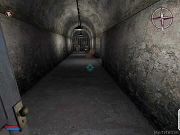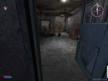 Dirígete de vuelta a la entrada exterior, cogiendo munición y notas por el camino. Puedes coger munición para tu metralleta de los soldados que van de púrpura. Asegúrate de coger la tarjeta de algún guardia para abrir las puertas electrónicas.