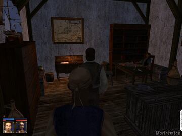 Si entras en la residencia por la noche, los guardias te pararán y te dirán que vuelvas por la mañana. Cuando entres en la residencia, primero teencontrarás con otro capitán. Él apenas dice adiós y se va. Cuenta al gobernador sobre la invasión francesa. Él intentará echarte una mano con tu nave para liberar Oxbay pues él ahora no tiene muchas naves. Tú estarás de acuerdo en ayudar y te dará una orden.