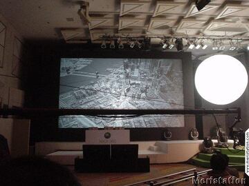 Ahora toca el turno a los vídeos. Moore da paso a las pantallas gigantes. En estas se proyectan imágenes en movimiento de los principales juegos en desarrollo. Toda una delicia audiovisual. Y dejadme hacer un inciso en cuanto al equipo de sonido que se ha preparado para el evento. Qué maravilla y qué potencia. Graves profundos que se clavan en tu interior y agudos claros y cristalinos. Casi me quedo sordo, pero vale la pena escuchar estos juegos en su máximo esplendor. Los rugidos de los motores de los coches digitales que desfilan ante mis ojos, por ejemplo, me hacen sentir como si estuviera en el circuito. Pero la parte visual no se queda atrás. Es más, puedo decir sin temor a equivocarme que algunas de las imágenes son lo mejor que he visto nunca en un videojuego. Veremos si eso luego se plasma en una experiencia jugable inolvidable, pero al menos, la cosa promete.