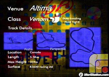 A través de los menús de WipEout se pueden elegir entre 1 o 2 jugadores vía Link-up cable, tres modalidades de juego: Race Championship, Single Race y Time Trial. A su vez, también deberemos decidir entre dos niveles de dificultad, Venom y Rapier Class -con un incremento sustancial en la velocidad de nuestros monoplazas antigravedad y diferencias visibles en cada circuito).
